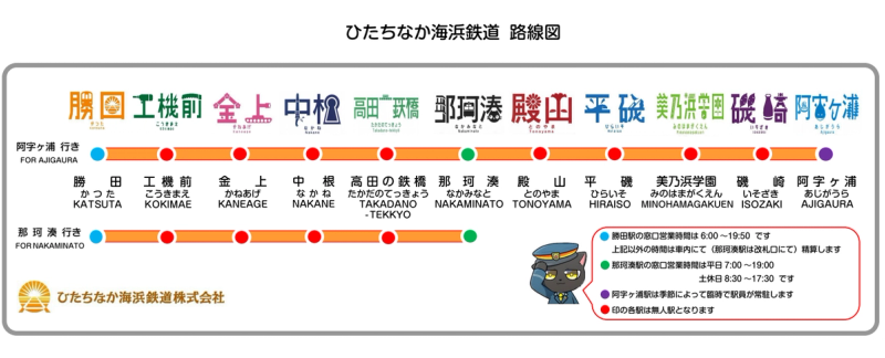 The Hitachinaka Seaside Railway Minato Line is a local train that connects a total of 11 stations from Katsuta Station to Ajigaura Station. With a one-day free pass, you can hop on and off as you please. Enjoy sightseeing along the line, especially in combination with the seaside park!