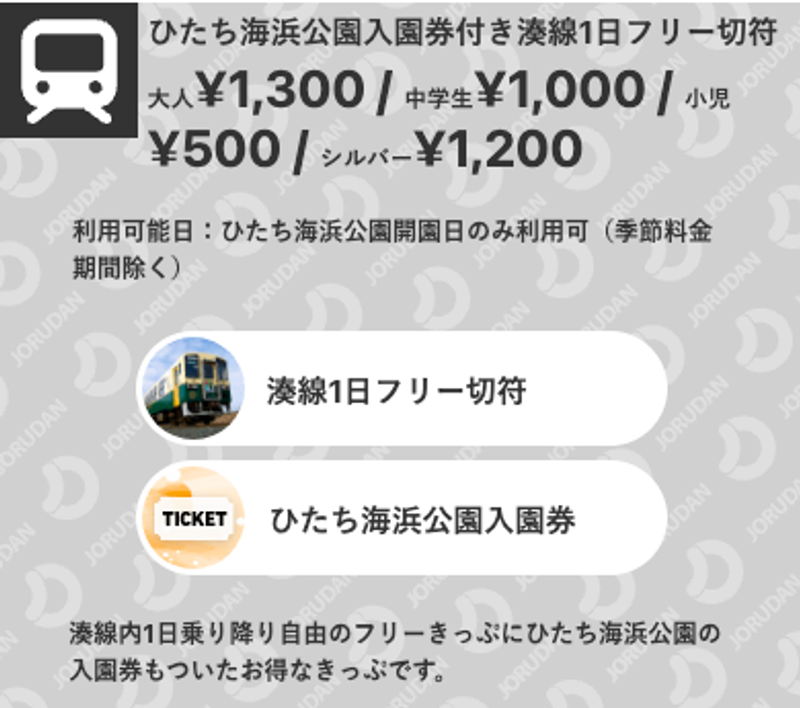 This ticket includes admission to the National Hitachi Seaside Park and a one-day unlimited ride pass for the Hitachinaka Seaside Railway Minato Line.
